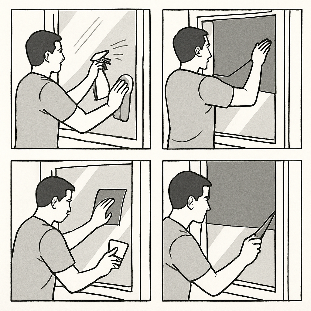 Spray your cleaning solution onto the window surface. Be sure to cover the entire area evenly, but avoid soaking the window, as excessive moisture can seep under the film and cause it to peel. Light, even spraying is key to effective cleaning without damaging the tint film.